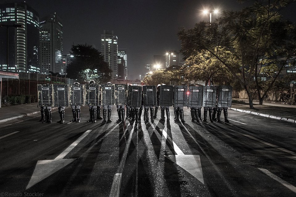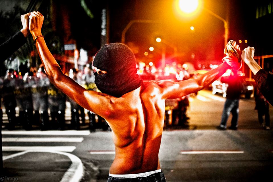 O principal aspecto diferenciador das imagens capturadas nos protestos que tomam o país desde junho é a noite. Com a maioria das manifestações marcadas para o final da tarde, é na ausência de luz natural que se realizam as fotos que ilustram as edições de jornais e sites de notícias dos últimos meses. E foi através dessas imagens noturnas, carregadas de dramaticidade acentuada pelo forte contraste e algumas vezes na saturação das cores, que 26 fotógrafos que acompanham as manifestações em São Paulo foram parar no extenso muro do cemitério do Araçá na avenida Dr. Arnaldo. Dali para o New York Times foi um pulo.