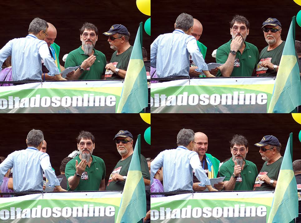 No início, Lobão falou. Novamente criticou a presença dos manifestantes que pediam intervenção