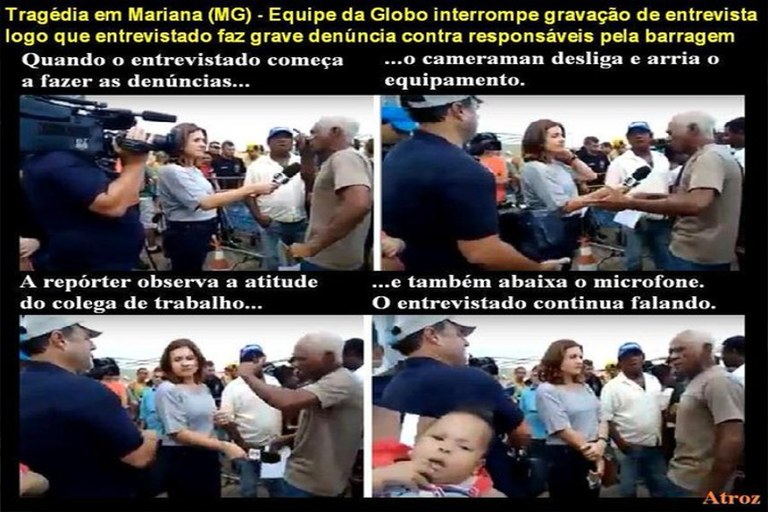 Do Twitter do Ricky Silva:Equipe da Globo corta entrevista quando nota que entrevistado está denunciando Samarco/em