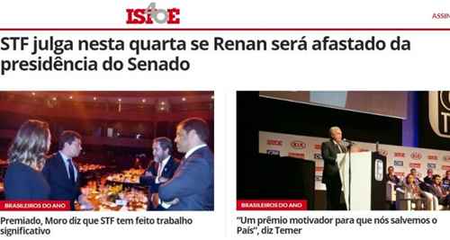 Além do usurpador golpista, o outro ganhador de prêmio da Istoé foi Sergio Moro. Aliás, não se sabe