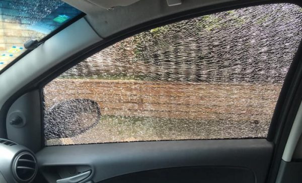 Uma jornalista, com doutorado em sociologia, teve uma janela de seu carro quebrada neste sábado