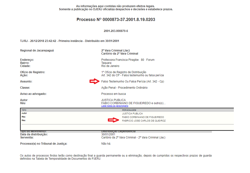 processado por falso testemunho. Veja abaixo: