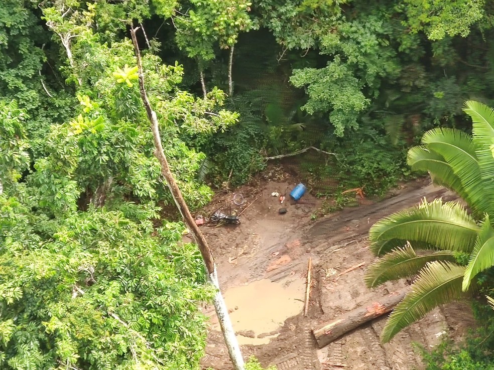 Ainda de acordo com o Ibama, um trator esteira, utilizado para abrir estradas clandestinas na Terra
